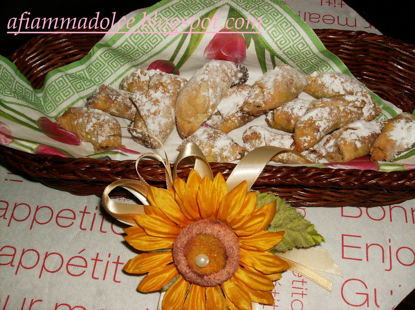 Lavorate l’impasto in una ciotola con 2 uova e un tuorlo (l’albume ci servirà nel ripieno) e farlo riposare per circa mezz’ora coperto in una pellicola. Preparate il ripieno lavorando il mascarpone con lo zucchero per bene ed aggiungendo poi le noci ed infine l’albume montato a neve con 2 cucchiai di zucchero cercando di versarlo delicatamente dal basso verso l’alto. Ponete l’impasto sulla spianatoia, formate delle pagnottine , infarinate bene la spianatoia ed il matterello e stendete molto sottile una sfoglia di circa 20 cm, ritagliate dei quadrotti (anche non perfetti!) con la rotella dentata (sempre ben infarinata!!) di circa 3×3 o poco più, versate su ognuno un po’ di ripieno, avvolgeteli su se stessi quasi come un cornetto. Poneteli su una teglia ricoperta con carta forno, in forno già caldo a 180° per circa 20-25 minuti finchè saranno imbionditi. A fine cottura spolverizzate con abbondante zucchero a velo vanigliato.Volendo potete scegliere di aromatizzare l’ineterno con scorzette d’atancia candita che sposano benissimo con le noci.