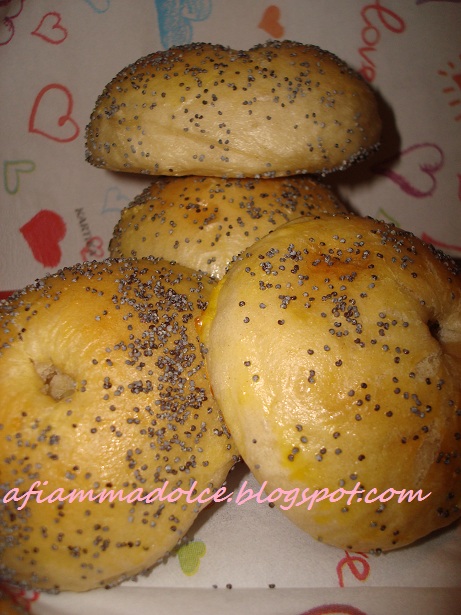 Non ho mai preparato i bagels anche se mi hanno sempre incuriosito e non ne conoscevo la storia, ora tocca farli! Hanno catturato la mia attenzione anche i taralli glassati del post precedente, m'attirano proprio!
