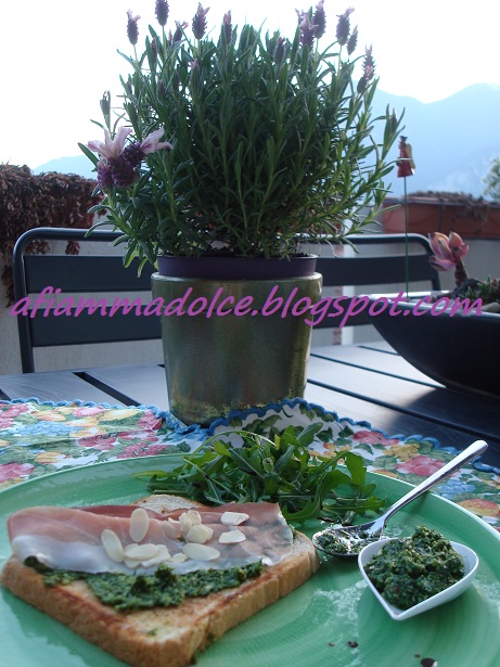 Pesto di rucola e mandorle..su bruschetta!