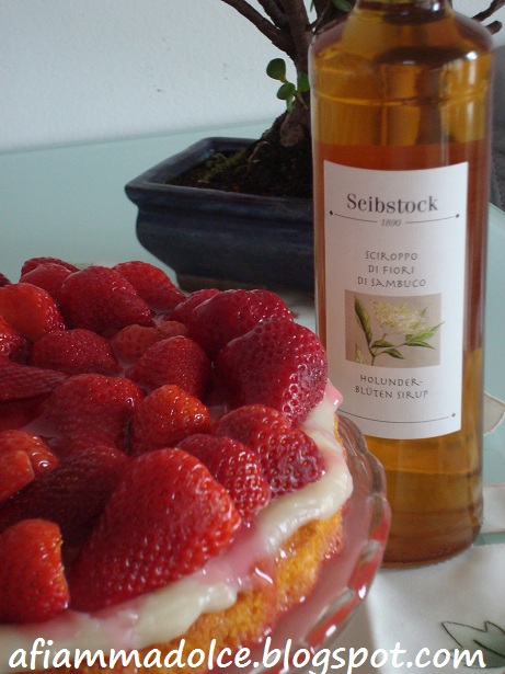 Amici, grazieeee!!!Grazie davvero per l’affetto dimostratoci ieri con il Regionale!! Oggi invece faccio partire la carrellata di dolci e marmellate a base di fragole. Girano da un po’ nel mondo blog ma io ho rispettato il ciclo della natura e..del mio terrazzo!!Ebbene sì, cari…ho piantato tante fragole che mi gusto in attesa di andare in montagna a raccogliere quelle di bosco più “ine”e farci altre marmellate made in Trentino:-))))) Questa ricetta è un po’ particolare nel senso che la base non è nè una frolla nè un pan di spagna..è una ricetta tedesca (non odiatemi :-)))molto light poichè contenente olio al posto del burro. Inoltre la crema è senza uova nè grassi (nè burro nè olio) e..meravigliosamente profumata allo sciroppo di sambuco! Eh già..questa pianta cresce rigogliosa sul lungo Sarca sotto casa mia quindi ogni anno ne approfitto per preparare il famoso sciroppo di cui vi darò ricetta nel prossimo post poichè per questa torta, ho utilizzato lo sciroppo di sambuco regalatomi da i miei cari amici Axel e Annette (danke sehr!) quest’inverno….ignari che io…..lo autoproducessi!!!Beh insomma…adesso ne ho da smaltire un bel po’ quindi..ne vedrete delle belle!!!!