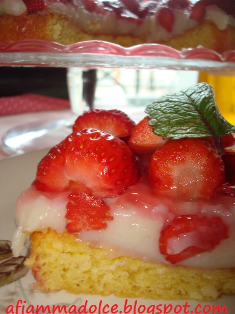 che bella questa torta, mi manca giusto un cestinetto di fragole. Quest'anno volevo piantarle ma poi tra bora e brutto tempo non le ho più messe, ma mi guardo le tue che sono uno spettacolo. Bella e leggera questa base, me la segno!!
