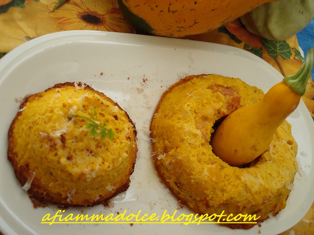Questo tortino è salato e quindi favolosoooooooooooooooooo!!!! Non che non mi piaccia la zucca nei dolci ma quando la trovo nelle preparazioni salate mi rinvigorisco! Baciiii