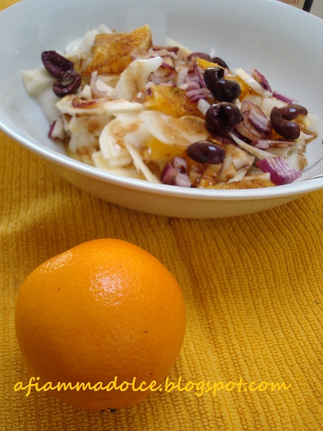 Un insalata freschissima..proprio come te, mia cara amica Yrma. Il colore e il profumo delle arance arriva fin qui.