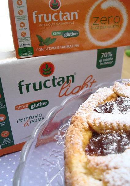 Per la mia speciale frolla montata cliccate qui ma sostituite lo zucchero con il fructan light nella dose di 120 g. Proseguite come con una normale crostata e farcite con marmellata (io la mia di kiwi e cioccolato per la ricetta cliccate qui.